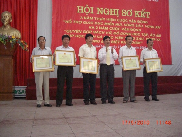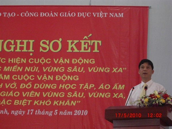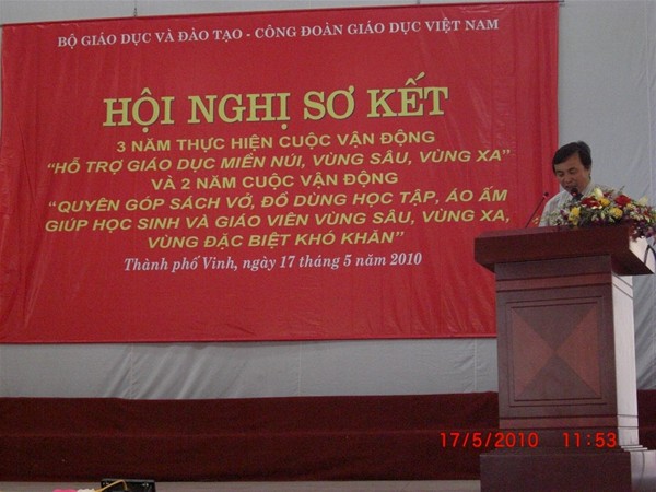 Trong Hội nghị Sơ kết 3 năm cuộc Vận động “ Hỗ trợ giáo dục miền núi , vùng sâu, vùng xa “ và 2 năm cuộc vận động “ Quyên góp sách vỡ, đồ dùng học tập , áo ấm giúp học sinh và giáo viên vùng sâu, vùng xa , vùng đặc biệt khó khăn “, đại diện Công đoàn nhà trường , Thầy Diệp Cẩm Thu đã báo cáo tham luận tại Hội nghị về kết quả nhà trường đã đạt được trong thời gian qua . Thành tích cụ thể của nhà trường  đã được Bộ Giáo dục và Công đoàn Giáo dục Việt Nam đánh giá cao và khen thưởng Bằng khen của Bộ Trưởng Bộ Giáo dục và Đào tạo cho Tập thể Công đoàn Lạc Hồng và Cá nhân Thầy Hiệu trưởng Trần Hành .