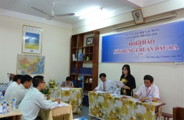 Nhằm chuẩn hóa nâng cao chất lượng đào tạo dựa trên sứ mạng và tôn chỉ của Nhà trường, đáp ứng được nhu cầu của doanh nghiệp và các tổ chức trong xã hội, góp phần phục vụ sự nghiệp công nghiệp hóa, hiện đại hóa đất nước trong thời kỳ hội nhập và hợp tác quốc tế, vào lúc 13h30, ngày 25/5/2012, tại phòng E208, cơ sở 3, Trường Đại học Lạc Hồng, lần thứ hai Khoa Đông Phương học tổ chức Hội thảo mở rộng về việc xây dựng chuẩn đầu ra các ngành Trung Quốc học, Nhật Bản học, Hàn Quốc học và Việt Nam học (Hội thảo lần thứ nhất được tổ chức ở cấp Khoa vào sáng ngày 18/5/2012).