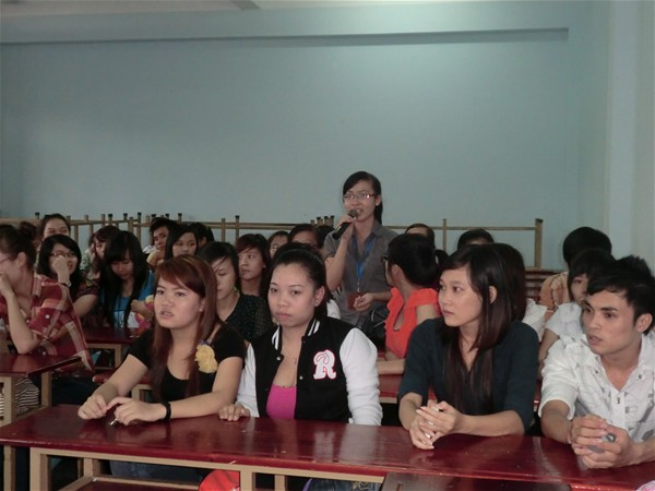 Buổi sinh hoạt diễn ra rất sôi nổi. Sau phần giới thiệu khách mời và phần phát biểu của Lãnh đạo Khoa, các bạn sinh viên tham gia buổi sinh hoạt đã thảo luận bằng tiếng Trung về chủ đề “Chào mừng ngày Nhà giáo Viêt Nam 20/11”, nhiều sinh viên đã nói lên những dự định của mình trong ngày lễ Nhà giáo Việt Nam, một số bạn khác thì kể về kỷ niệm những năm trước đây của mình vào ngày Nhà giáo Việt Nam.