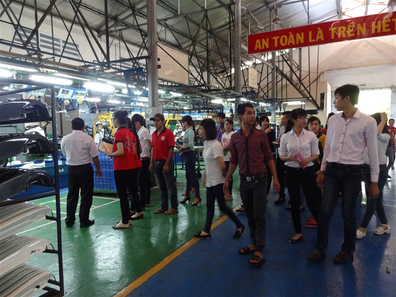 Sau buổi tọa đàm, sinh viên đã được phép đến tham quan Nhà máy lắp ráp xe tay ga như: xe Attila Venus, Attila Elizabeth… của Công ty.