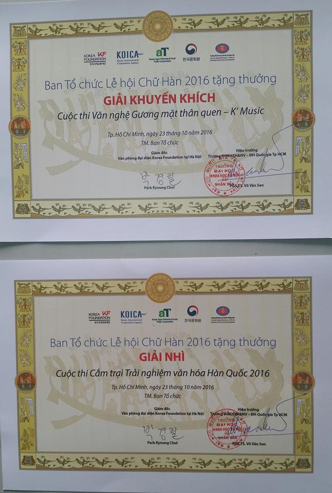 Kết thúc chương trình, sinh viên ngành Hàn Quốc trường Lạc Hồng đã giành được giải nhì cuộc thi “̀u trại không gian văn hóa Hàn Quốc” và giải khuyến khích cuộc thi “Gương mặt thân quen” ghi nhận sự nỗ lực của các bạn sinh viên trong suốt quá trình chuẩn bị và diễn ra lễ hội Hangeul 2016.