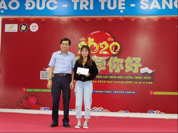 Nhân buổi lễ đón tiếp tân sinh viên ngành ngôn ngữ Trung Quốc cũng tổ chức trao giao cuộc thi hùng biện tiếng Trung Online. Em sinh viên Nguyễn Hồ Ngọc Nhi lớp 18DT111 đạt giải nhất cuộc thi hùng biện tiếng Trung Online. Và ngành đã chọn em Ngọc Nhi thuyết trình bài thi giới thiệu về quê hương Phú Yên của em trong buổi lễ này.