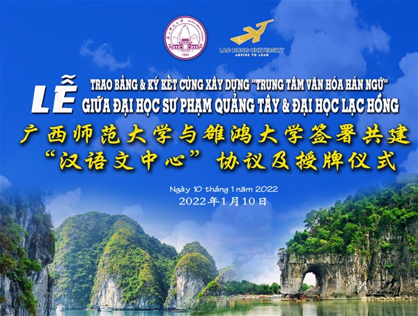 Đầu năm 2022, thông qua trao đổi và đàm phán hữu nghị, hai trường đã cùng ký kết biên bản hợp tác và thành lập “Trung tâm văn hóa Hán ngữ” đầu tiên tại Việt Nam, qua đó tạo điều kiện cho sinh viên của LHU cũng như các học sinh sinh viên trong khu vực có điều kiện xin được học bổng, giáo cụ học tập, giảng viên, chuyên gia có chất lượng từ trường Đại học Sư phạm Quảng Tây. Trên tiền đề đó, trong đầu năm 2022, đã có 112 sinh viên ngành NNTQ của trường đã được nhận học bổng du học theo chương trình “Thực tập” và “Tiến tu Hán ngữ” do trường Đại học Sư phạm Quảng Tây tổ chức. Trên phạm vi cả nước, Đại học Lạc Hồng là trường được nhiều suất học bổng nhất được cấp bởi trường Đại học Sư phạm Quảng tây trong năm 2022.