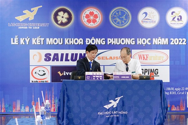 Sáng 22/09/2022, Đại học Lạc Hồng tổ chức Lễ Ký Kết MOU Khoa Đông phương học 2022. Đến dự có TS. Lâm Thành Hiển – Hiệu trưởng, TS. Nguyễn Hữu Nghị - Trưởng Khoa Đông phương học, ThS. Nguyễn Thị Hoàng Oanh – Trưởng Phòng Quan hệ Quốc tế kiêm Phó trưởng Khoa Đông phương học, TS. Nguyễn Văn Trung – Giám đốc Trung tâm Tuyển sinh & Quan hệ công chúng, ThS. Nguyễn Hải Quân – Trưởng bộ phận Quan hệ Doanh nghiệp, các giảng viên ngành Ngôn Ngữ Trung Quốc và Nhật Bản học, cùng đại diện 7 doanh nghiệp Nhật Bản, Trung Quốc.