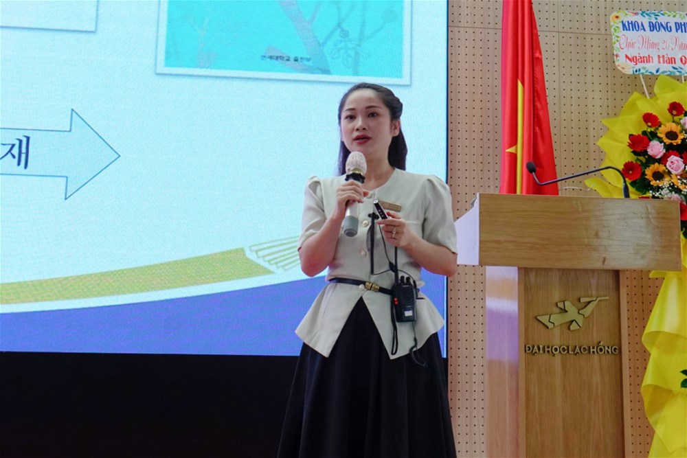 ThS. Đỗ Thị Thùy - Trưởng ngành Hàn Quốc học thuyết trình về Tổng quan Ngành Hàn Quốc học tại LHU