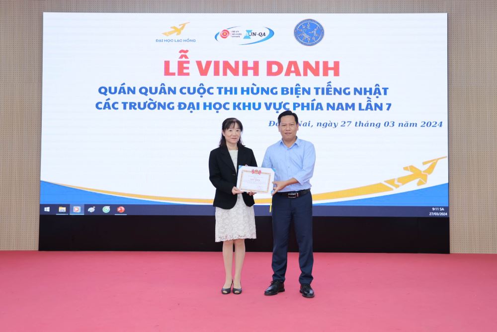 Cùng đón mừng và tôn vinh sự thành công rực rỡ của bạn Nguyễn Thị Nữ, sinh viên lớp 21DN113, khi cô ấy đã xuất sắc đạt giải Nhất tại cuộc thi Hùng biện tiếng Nhật các trường đại học khu vực phía Nam lần thứ 7 được tổ chức tại Trường Đại học Khoa học Xã hội và Nhân văn, TP. Hồ Chí Minh.