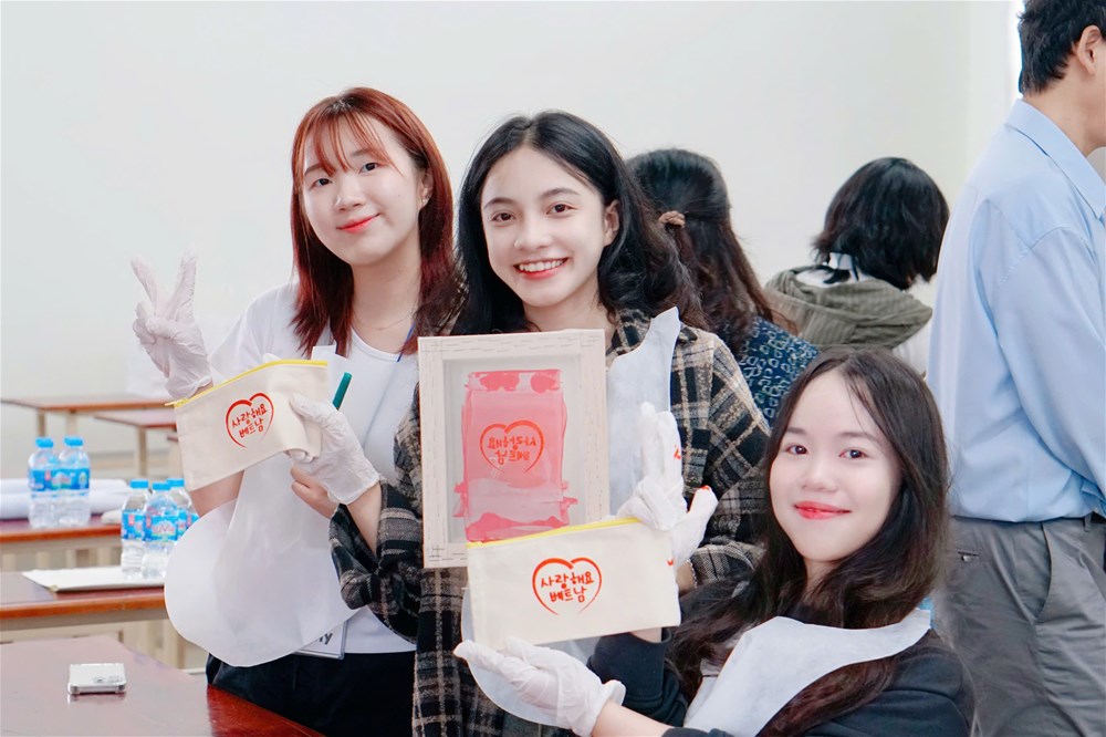 Tại chương trình, các bạn sinh viên Ngành Hàn Quốc học đã được tham gia trải nghiệm các hoạt động như trò chơi câu hỏi nhanh, trải nghiệm thiết kế túi vải, trải nghiệm làm Kimbap.