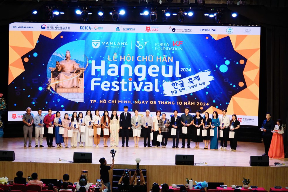 Lễ hội văn hóa Hàn Quốc “Hangeul Festival 2024” - lễ hội truyền thống giữa các trường Đại học, Cao đẳng, Trung tâm đào tạo tiếng Hàn, ngành Hàn Quốc học ở khu vực phía Nam đã chính thức diễn ra vào ngày 5/10 tại Trường Đại học Văn Lang.