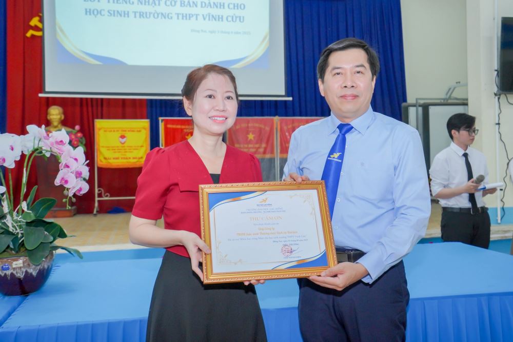 Sáng ngày 3/6/2025, tại Trường THPT Vĩnh Cửu, Khoa Đông phương học - Trường Đại học Lạc Hồng đã long trọng tổ chức Lễ khai giảng lớp Tiếng Nhật cơ bản dành cho học sinh THPT.