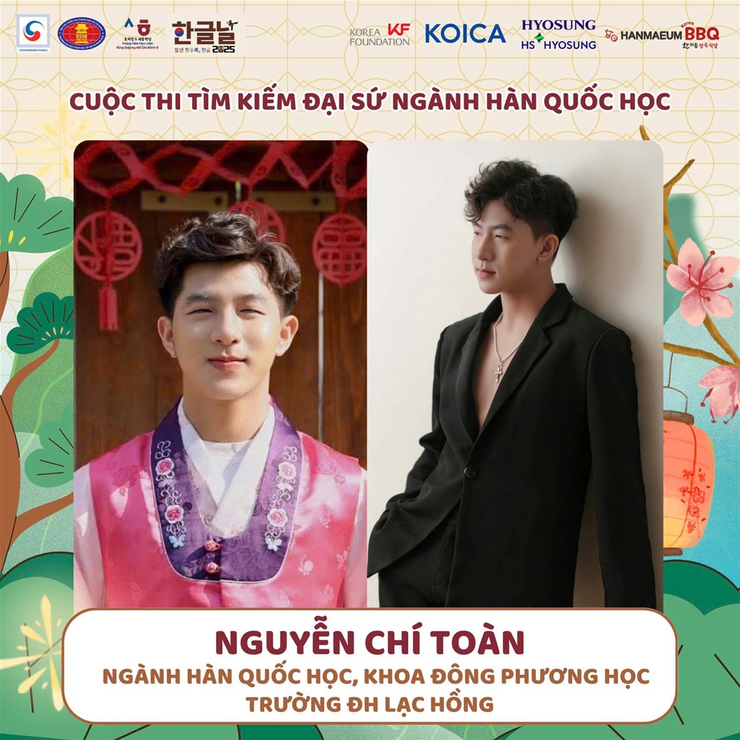 Sinh viên Nguyễn Chí Toàn - Top 5 chung cuộc tại Cuộc thi Đại sứ Nam sinh Ngành Hàn Quốc học Khu vực miền Nam năm 2025