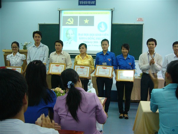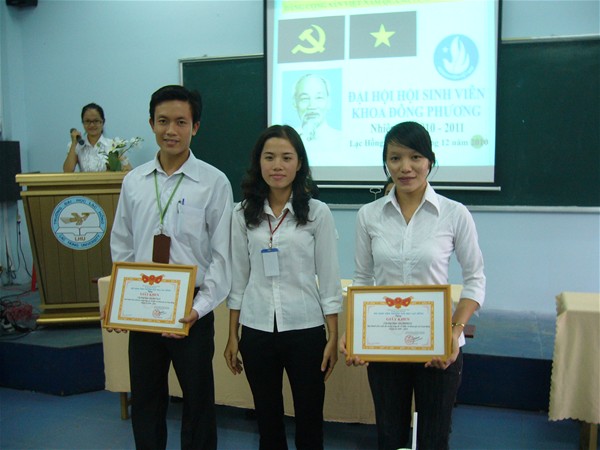 Đ/c Trần Tiến trao giấy khen cho các cá nhân có thành tích xuất sắc trong các hoạt động HSV khoa Đông Phương - Nhiệm kỳ 2009 - 2010
