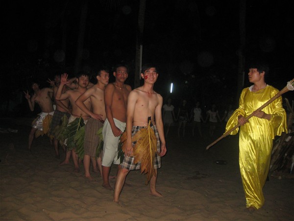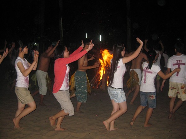 Đến 22h00, sau chương trình văn nghệ là phần lửa trại, mở màn với sự xuất hiện của thần bóng đêm ma quái, bóng đen bao trùm - bao phủ và dồn nén. Bỗng nhiên thần ánh sáng xuất hiện với ngọn lửa vĩnh hằng, xua tan bóng tối, mang lại sức mạnh, niềm tin và chiến thắng. Khi ngọn lửa của sự bất tử bùng cháy lên thì tiếng hát vui mừng và hạnh phúc của con người được cất lên. Màn múa lửa bởi những vũ công hóa trang trong trang phục người tiền sử nhảy múa theo tiếng nhạc âm vang. Một màn múa lửa ấn tượng và hấp dẫn đã cuống những khán giả cùng hòa theo nhịp điệu bên đống lửa cháy bập bùng. Sau màn múa lửa là các trò chơi vui nhộn.