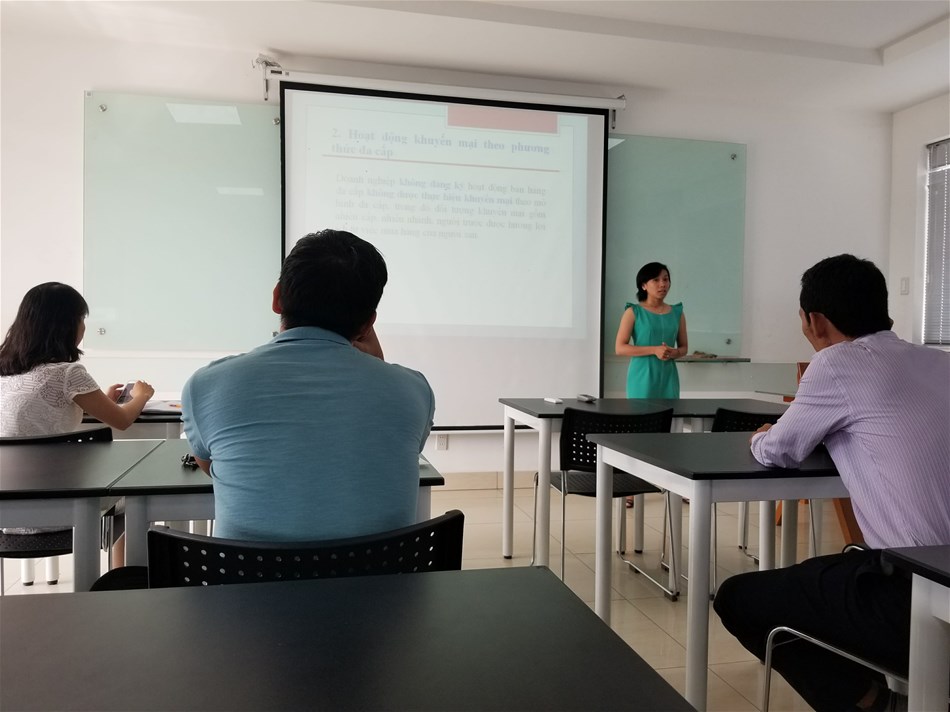 ThS. Trần Thị Phương Thảo trình bày đề tài "Quy định chi tiết luật thương mại về hoạt động xúc tiến thương mại", báo cáo đã chỉ ra những điểm mới trong luật thương mại sẽ ứng dụng vào ngày 15/07/2018, qua đó kế toán cần nắm và doanh nghiệp cần biết để quản lý kinh doanh.