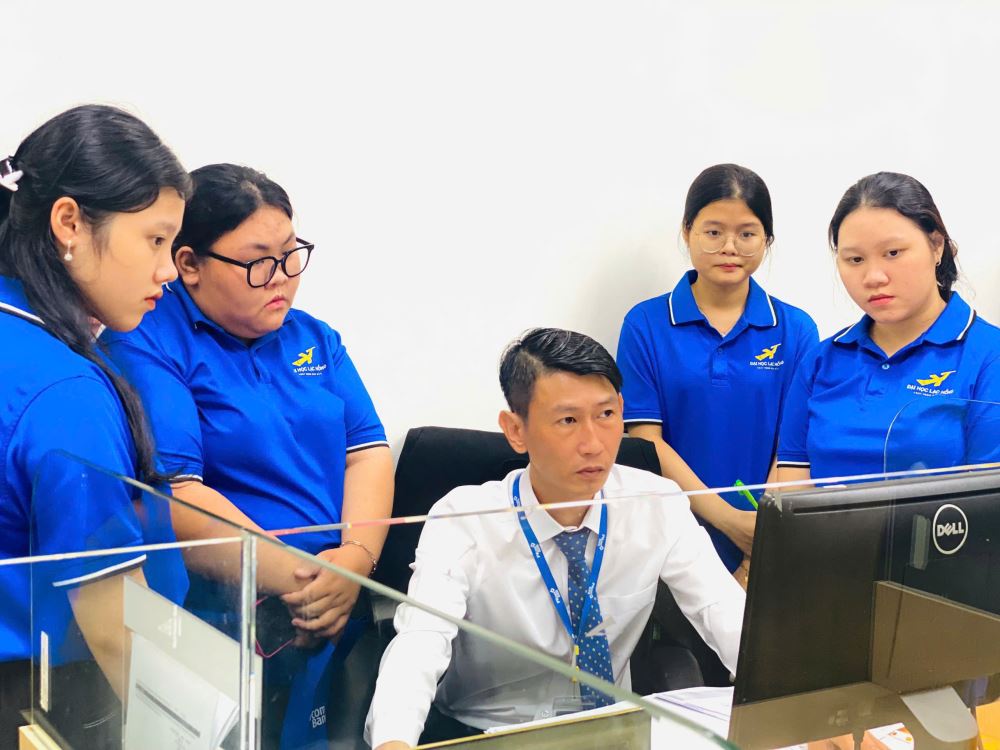 Ngoài việc được giới thiệu về cơ cấu tổ chức và các sản phẩm dịch vụ của ngân hàng, sinh viên còn tham quan các phòng ban chức năng như Phòng giao dịch khách hàng, Phòng kế toán, và Phòng tín dụng. Tại đây, các bạn đã trực tiếp quan sát quy trình vận hành, cách xử lý giao dịch nhanh chóng và chính xác, cũng như tiếp cận quy trình thẩm định tín dụng và quản lý danh mục khách hàng.
