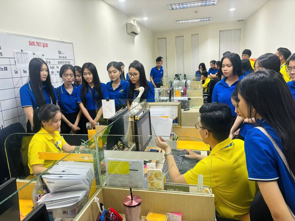 Chuyến tham quan nhằm giúp sinh viên có cái nhìn thực tế về hoạt động vận hành của một ngân hàng thương mại, từ khâu tiếp đón khách hàng, xử lý giao dịch đến các quy trình quản lý tài chính nội bộ và đánh giá rủi ro tín dụng. Đây là dịp để các bạn củng cố kiến thức lý thuyết đã học và nắm bắt thêm các kỹ năng nghiệp vụ cần thiết cho công việc sau này.
