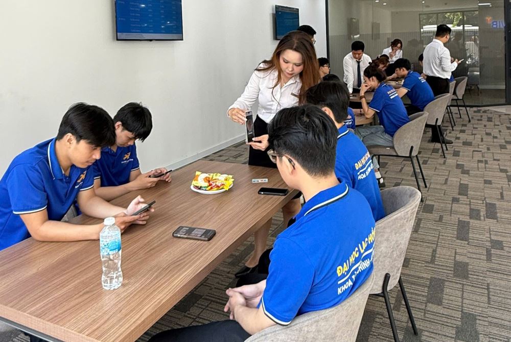 Một điểm nổi bật của buổi tham quan là phần giao lưu trực tiếp giữa sinh viên và đại diện ngân hàng. Nhiều câu hỏi thiết thực liên quan đến quy trình tuyển dụng, cơ hội thực tập, kỹ năng cần có để làm việc tại ngân hàng đã được sinh viên đặt ra và nhận được phần phản hồi cởi mở, chi tiết từ phía ngân hàng. Qua đó, các bạn có thêm định hướng rõ ràng và động lực chuẩn bị cho giai đoạn thực tập sắp tới.