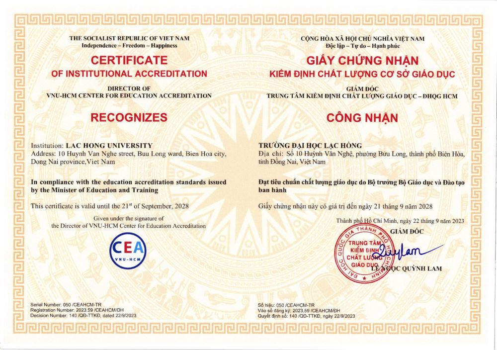 Giấy chứng nhận LHU chính thức đạt chuẩn chất lượng quốc gia trong chu kỳ II