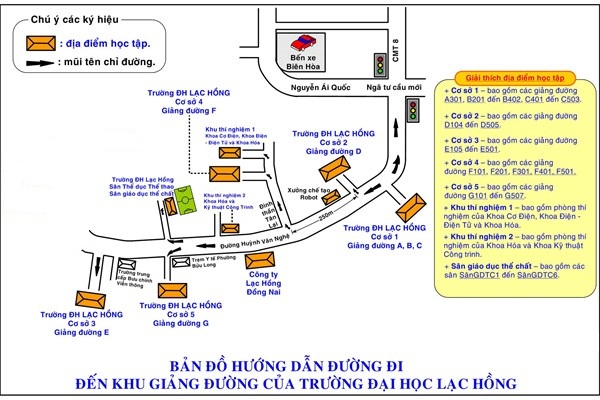 Trường Đại học Lạc Hồng tọa lạc tại số 10, Huỳnh Văn Nghệ (Tỉnh lộ 24), P. Bửu Long, Tp. Biên Hòa - Tỉnh Đồng Nai. Hầu các cơ sở của trường nằm dọc con đường tại phường Bửu Long nên rất dễ tìm. Để tiếp cận các cơ sở này, các bạn sinh viên có thể lựa chọn các loại phương tiện khác nhau như xe đạp, xe máy, xe buýt,...Tuy nhiên, đối với các bạn ở các vùng miền khác, không thuộc địa bàn tỉnh Đồng Nai có thể gặp khó khăn trong việc tìm đường. Các bạn có thể tham khảo một số tuyến xe buýt dưới đây. Bến xe Tp. Biên Hòa cách trường Đại học Lạc Hồng khoảng 1 km . Từ bến xe này, các bạn có thể bắt xe ôm tới trường hoặc đi bộ đến ngã tư khoảng 200 m rồi rẽ phải và bắt tuyến xe buýt số 7. Tuyến này sẽ lần lượt đi qua các cơ sở 1, 2, 4, 5 và 3 của trường.
