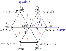 Basic vector space and witching patterns Voltage values supplying for the SVPWM