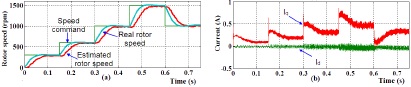 Step speed command, real rotor speed and estimated rotor speed response in experiment by FPGA kit