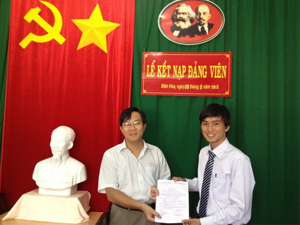 Đến dự lễ kết nạp, có Đ/c Nguyễn Trùng Phương – Bí thư Đảng ủy trường; về phía chi bộ có Đ/c Võ Hồng Bảo Châu – Bí thư và toàn thể đảng viên chi bộ.