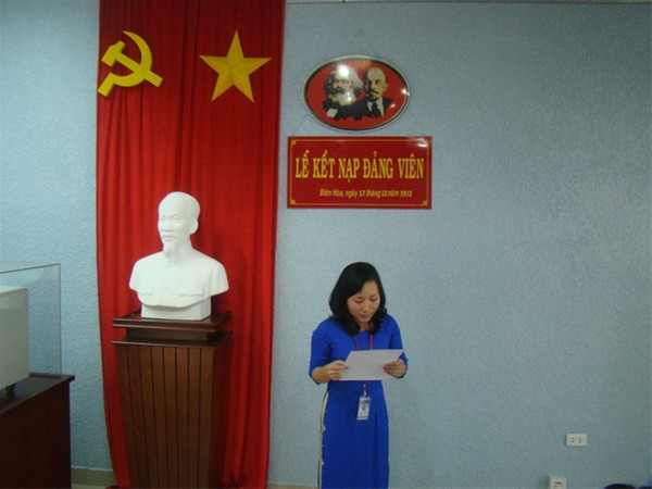 Trong không khí vui tươi, phấn khởi, với sự có mặt của toàn thể đảng viên trong chi bộ, buổi lễ diễn ra trong không khí trang nghiêm, ấm cúng. Ngay sau khi nhận quyết định, đảng viên mới Huỳnh Thị Hoàng Loan tuyên hệ trung thành với lí tưởng và mục tiêu cách mạng của Đảng, thực hiện nghiêm túc các nhiệm vụ của người đảng viên, đóng góp tích cực vào việc xây dựng Đảng, xứng đáng là đảng viên của Đảng cộng sản Việt Nam.