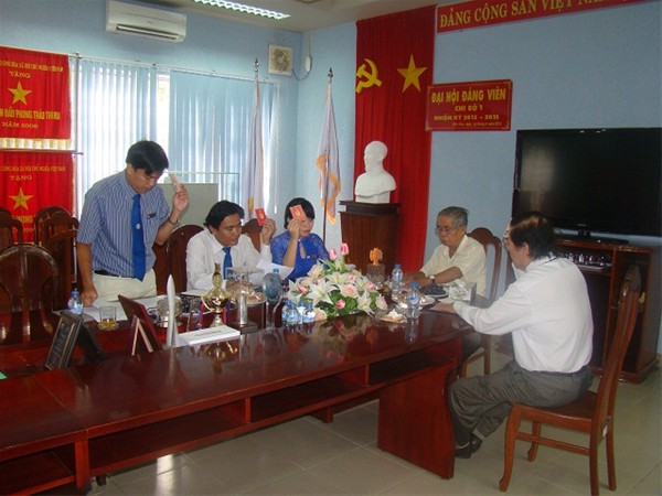 Hình 2: Chi bộ biểu quyết chương trình đại hội