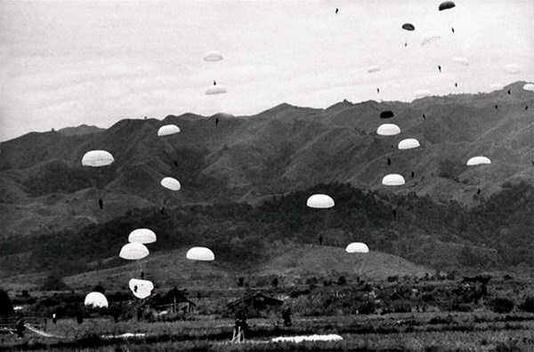Hình 2: Quân Pháp nhảy dù xuống Điện Biên Phủ
