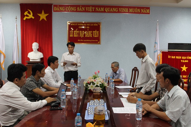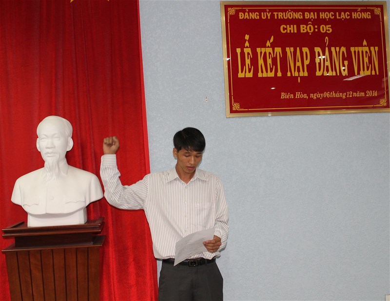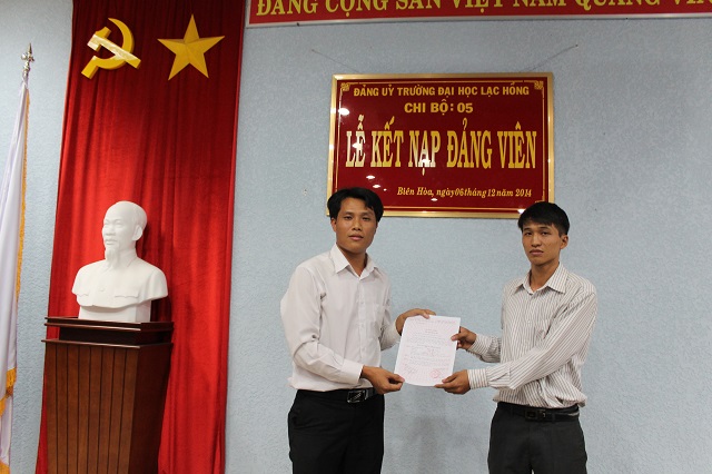 Được sự thống nhất của Ban thường vụ Đảng ủy Khối, Đảng ủy trường Đại học Lạc Hồng, vào lúc 16h00 ngày 06 tháng 12 năm 2014 tại phòng họp CS1 trường Đại học Lạc Hồng, Chi bộ 05 đã tiến hành tổ chức lễ kết nạp Đảng viên cho quần chúng xuất sắc Phan Kiên Cường vào Đảng Cộng sản Việt Nam; Đến dự buổi lễ kết nạp có Đ/c Nguyễn Trùng Phương – Bí thư Đảng ủy trường cùng toàn thể Đảng viên trong Chi bộ.