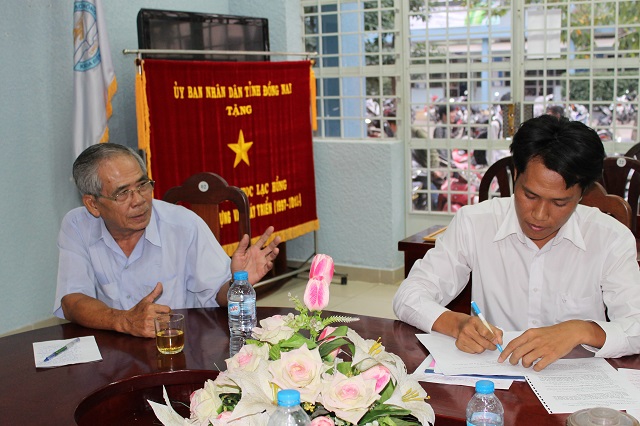 Hình 2: Đồng chí Phạm Văn Toản - bí thư chi bộ 05 trao quyết định kết nạp đảng viên cho quần chúng Phan Kiên Cường.