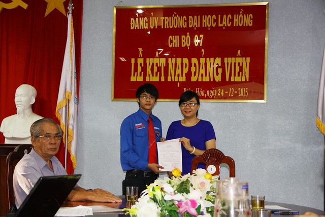 Được sự đồng ý của Đảng ủy khối các cơ quan tỉnh Đồng Nai, Ban Thường vụ Đảng ủy trường; ngày 24/12/2015, tại phòng họp trường Đại học Lạc Hồng (cơ sở 1), Chi bộ 7 đã tổ chức Lễ kết nạp đảng viên cho quần chúng Đoàn Bảo Trung vào Đảng Cộng sản Việt Nam, đến dự buổi lễ kết nạp có Đ/c Nguyễn Trùng Phương – Bí thư Đảng ủy trường cùng toàn thể đảng viên trong Chi bộ 7.