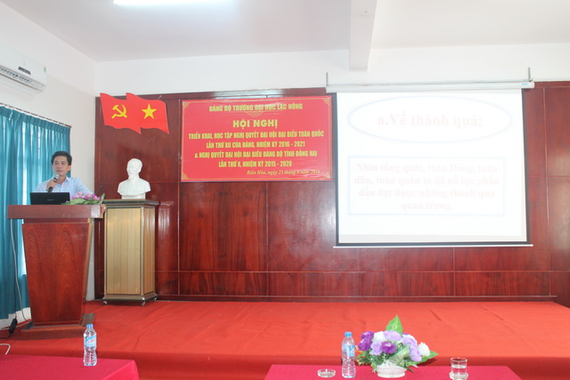 Có thể khẳng định việc học tập, quán triệt, thực hiện Nghị quyết Đại hội đại biểu Đảng bộ tỉnh Đồng Nai lần thứ X, nhiệm kỳ 2015 – 2020 và Nghị quyết Đại hội đại biểu toàn quốc lần thứ XII của Đảng, nhiệm kỳ 2016 – 2021 là đợt sinh hoạt chính trị sâu rộng có ý nghĩa, tầm quan trọng đặc biệt nhằm tạo sự chuyển biến về nhận thức, thống nhất ý chí và hành động trong toàn trường, đã được Đảng ủy trường tổ chức một cách nghiêm túc, chất lượng tốt, thiết thực và hiệu quả.