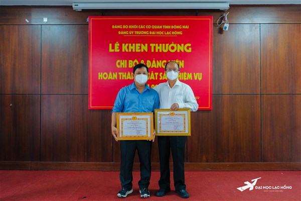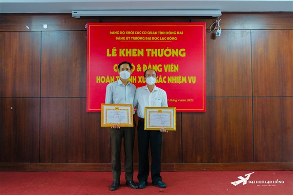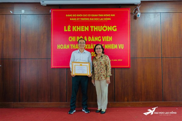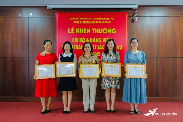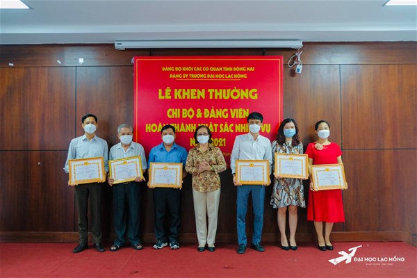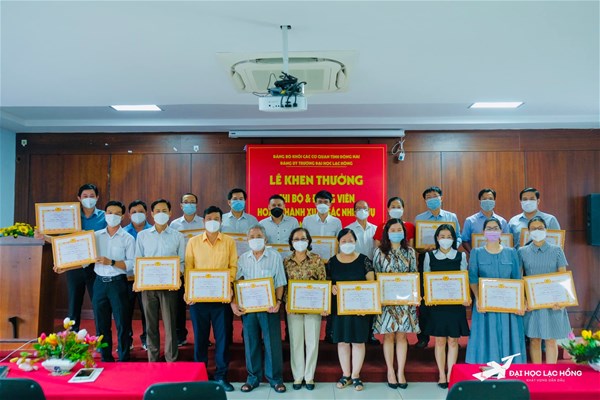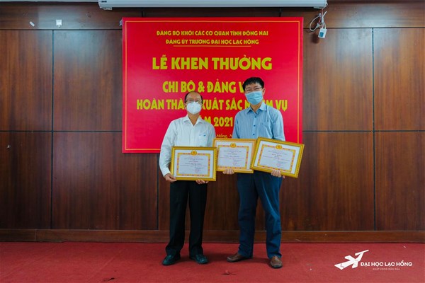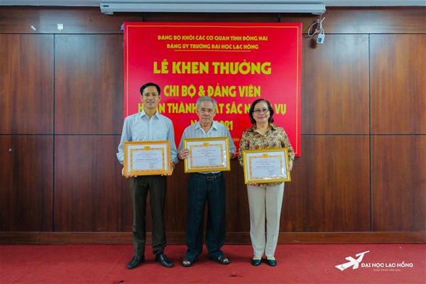 Sáng 01/4/2022 tại Hội trường B203, Cơ sở 1, Đảng ủy Trường Đại học Lạc Hồng đã tổ chức Lễ trao tặng các khen thưởng đối với các Chi bộ và cá nhân Đảng viên đã hoàn thành xuất sắc nhiệm vụ công tác Đảng năm 2021. Dự Hội nghị có đồng chí Nguyễn Trùng Phương - Bí thư Đảng ủy nhà trường; NGƯT. TS Nguyễn Thị Thu Lan - Phó Bí thư Đảng ủy, Phó Hiệu trưởng nhà trường; đại diện các Chi bộ Đảng trong toàn trường và các cá nhân Đảng viên tại các chi bộ đã có thành tích hoàn thành xuất sắc nhiệm vụ công tác Đảng trong năm 2021.