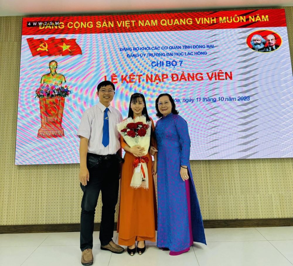 Được sự đồng ý của Đảng ủy khối các cơ quan tỉnh Đồng Nai và Ban Thường vụ Đảng ủy trường; Sáng ngày 11/10/2023 tại phòng họp cơ sở 1, Chi bộ 7 đã long trọng tổ chức Lễ kết nạp đảng viên cho quần chúng Nguyễn Thị Huệ Uyên vào Đảng Cộng sản Việt Nam.
