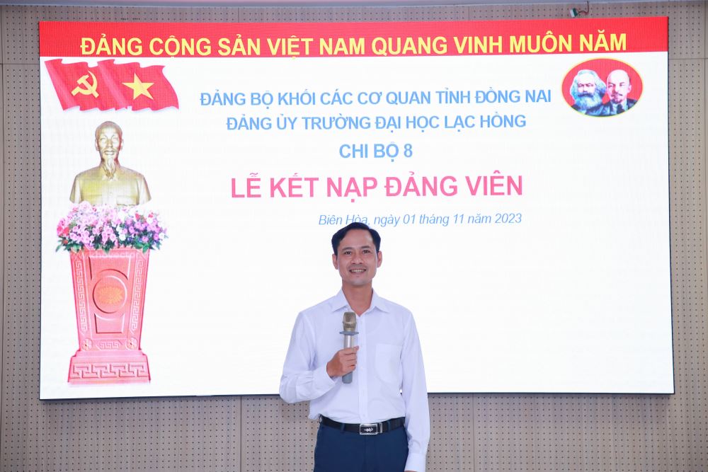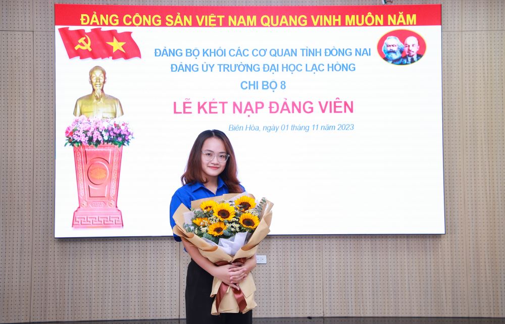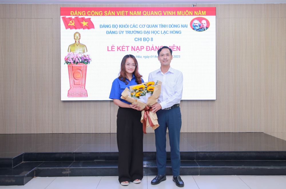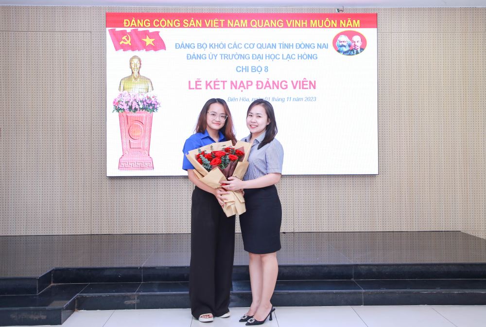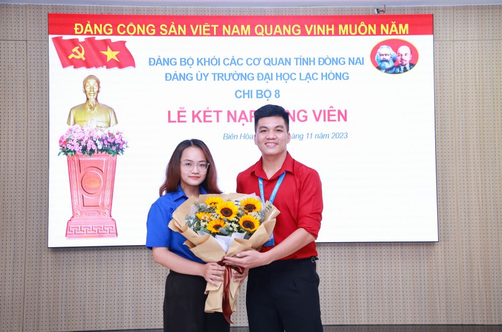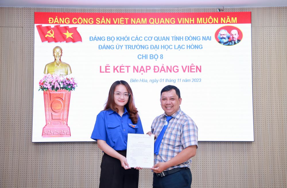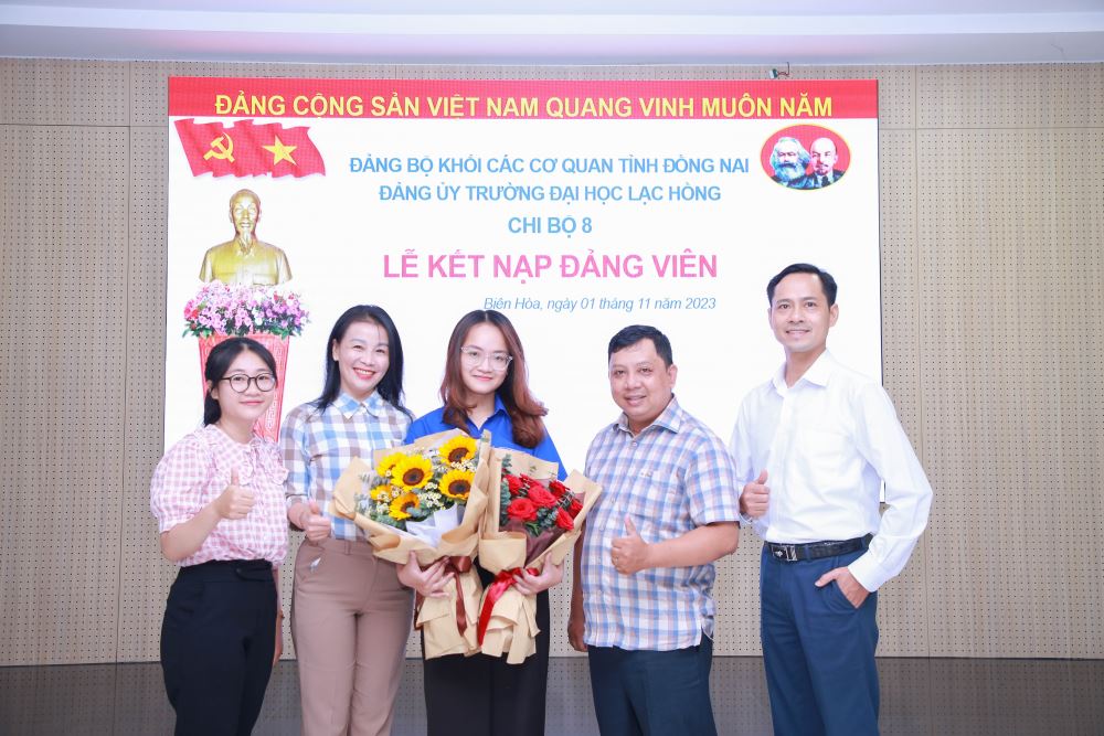 Được sự đồng ý của Đảng ủy khối các cơ quan tỉnh Đồng Nai và Ban Thường vụ Đảng ủy trường; Sáng ngày 01/11/2023 tại phòng B203, Cơ sở 1, Chi bộ 8 đã long trọng tổ chức Lễ kết nạp đảng viên cho quần chúng Nguyễn Phùng Kim Khánh vào Đảng Cộng sản Việt Nam.