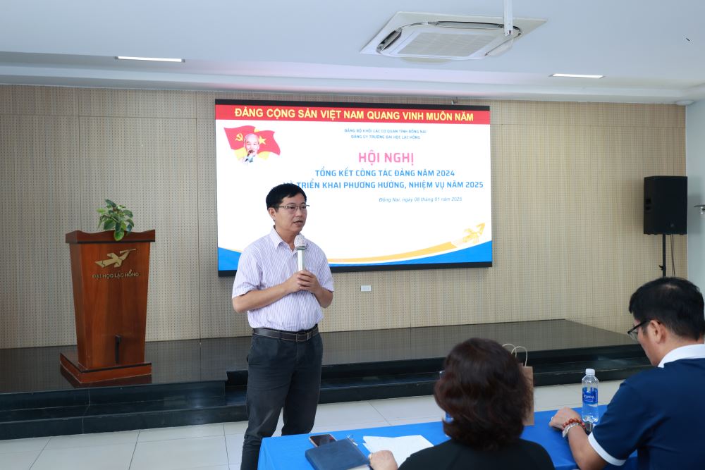 Sáng ngày 08/01/2025 tại Hội trường B203 - Trường Đại học Lạc Hồng, Đảng ủy trường đã tổ chức Hội nghị tổng kết công tác Đảng năm 2024 & triển khai phương hướng nhiệm vụ năm 2025.