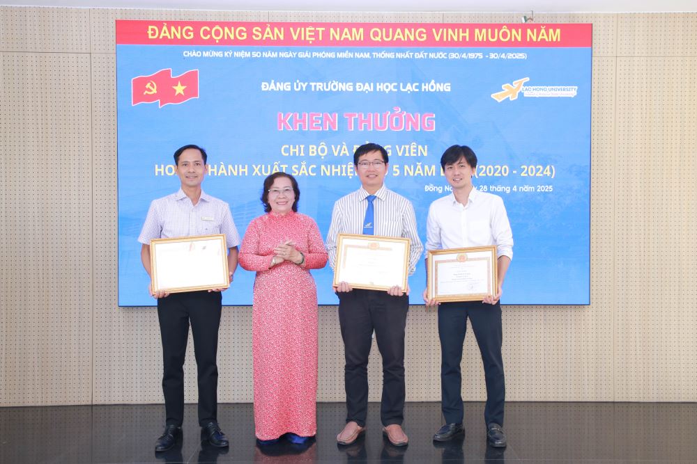 Đảng bộ Trường Đại học Lạc Hồng có Chi bộ 7 và Đ/c Lê Sơn Quang (Ủy viên BTV Đảng ủy, Phó Trưởng BQL Khu nội trú) ; Đ/c Đỗ Sĩ Trường (Phó Bí thư Chi bộ 10, Giám đốc TT Ngoại ngữ, Tin học) vinh dự được nhân khen thưởng của Thành ủy Biên Hòa về việc hoàn thành xuất sắc nhiệm vụ 5 năm liền (2020 – 2024).