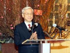 Tổng Bí thư chỉ rõ: Chúng ta đang có rất nhiều thuận lợi cơ bản, nhưng cũng đứng trước không ít khó khăn thách thức. Tuy nhiên, với bề dày truyền thống lịch sử của dân tộc ta, của Đảng ta, với những thành tựu và kinh nghiệm đã đạt được trong thời gian qua, với sự quyết tâm của toàn Đảng, toàn quân, toàn dân, chắc chắn chúng ta sẽ từng bước triển khai thực hiện thắng lợi Nghị quyết Đại hội toàn quốc lần thứ XI của Đảng, hoàn thành các mục tiêu, chương trình đã đề ra. Tổng Bí thư nhấn mạnh: Điều quan trọng là tạo ra sự đồng tâm nhất trí cao trong toàn Đảng, toàn dân; đề ra chương trình, kế hoạch, đề án cụ thể và bước đi thích hợp nhằm triển khai thực hiện cho được Nghị quyết Đại hội XI của Đảng. Nhân dịp này, thay mặt lãnh đạo Đảng, Nhà nước, Mặt trận Tổ quốc Việt Nam, Tổng Bí thư, Chủ tịch Quốc hội Nguyễn Phú Trọng bày tỏ lòng cảm ơn chân thành đối với các bậc lão thành cách mạng, các Bà mẹ Việt Nam Anh hùng, các thế hệ cán bộ qua các thời kỳ, các ngành, các cấp, Đảng bộ, chính quyền, các lực lượng vũ trang cùng toàn thể nhân dân cả nước, trong thời gian vừa qua, đã đồng lòng nhất trí, luôn kiên định mục tiêu và con đường đúng đắn mà Đảng và Bác Hồ kính yêu đã lựa chọn, đẩy mạnh Cuộc vận động học tập và làm theo tấm gương đạo đức Hồ Chí Minh; cảm ơn kiều bào ta ở nước ngoài luôn luôn hướng về Tổ quốc, để cùng góp sức xây dựng quê hương đất nước ngày càng giàu mạnh. Cũng nhân dịp này, Tổng Bí thư, Chủ tịch Quốc hội Nguyễn Phú Trọng đã thay mặt Đảng, Nhà nước, nhân dân Việt Nam, bày tỏ cảm ơn bạn bè quốc tế, các nước cũng như các tổ chức quốc tế, trong thời gian vừa qua đã luôn luôn ủng hộ, hợp tác, giúp đỡ Việt Nam trong công cuộc công nghiệp hóa, hiện đại hóa, xây dựng và bảo vệ đất nước; hy vọng sắp tới sẽ tiếp tục nhận được sự hợp tác giúp đỡ đó, với chất lượng và hiệu quả cao hơn.
