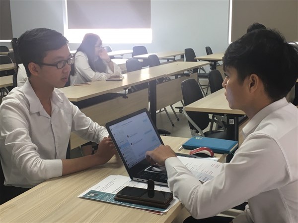 Sau buổi sơ vấn tại Hội thảo được tổ chức ngày 14/11/2020 tại I209. Sáng nay, ngày 01/12/2020. Đại diện Công ty Cổ phần Tập Đoàn Hoa Sen - Chi Nhánh Tỉnh Đồng Nai ông Nguyễn Công Mạnh - Phó Giám đốc Kinh doanh Tỉnh Đồng Nai đã đến Trường để tiếp tục phỏng vấn lần 2. Tham dự buổi phỏng phấn có gần 20 sinh viên 2 khoa Tài chính – Kế toán và Khoa Quản trị Kinh tế - Quốc tế cùng tham gia. Lần này các bạn sẽ được phỏng vấn ứng tuyển vào các vị trí mà các bạn đã đăng kí trong buổi sơ vấn, các bạn sẽ được biết chi tiết về công việc mình sẽ đảm nhận nếu trúng tuyển.