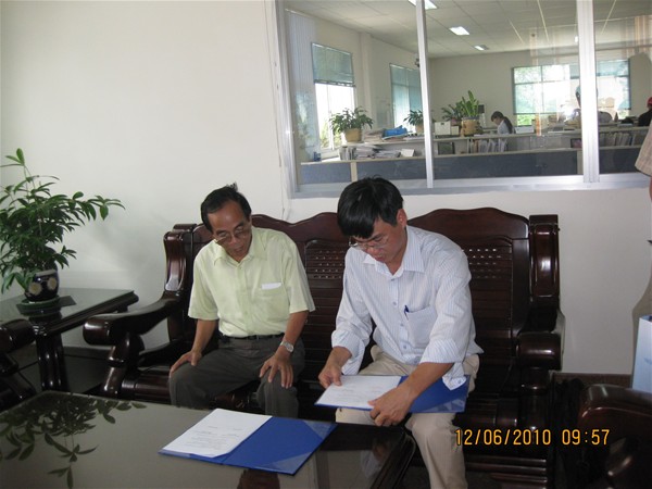 TS.Trần Hành (người ngồi bên trái) và Ths.Trần Dũng - Đại học Lạc Hồng