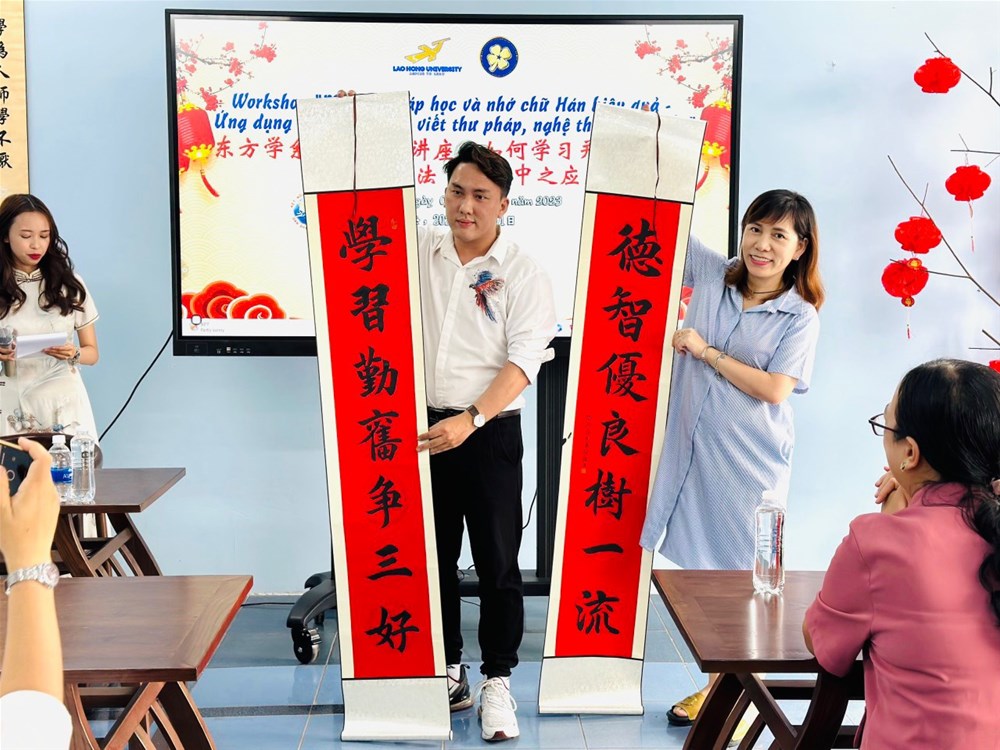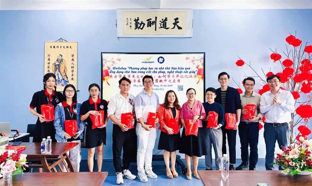 Chiều ngày 01/04/2023 tại Phòng học Đa chức năng, cơ sở 3, trường Đại học Lạc Hồng, Ngành Ngôn ngữ Trung Quốc đã tổ chức buổi workshop "Phương pháp học và nhớ chữ Hán hiệu quả - Ứng dụng chữ Hán trong viết thư pháp, nghệ thuật cắt giấy".