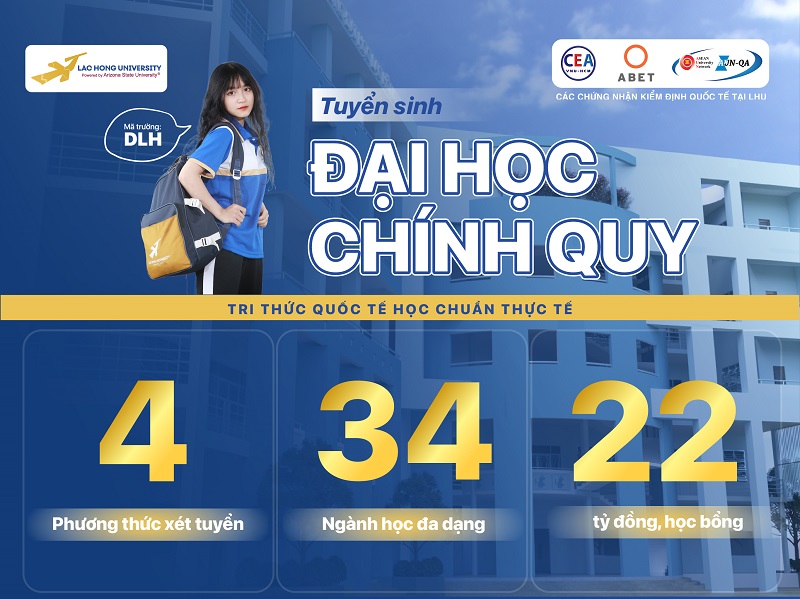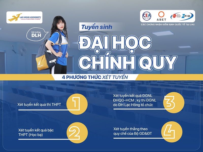 Năm 2025, Trường Đại học Lạc Hồng xét tuyển đại học chính quy theo 04 phương thức như sau: