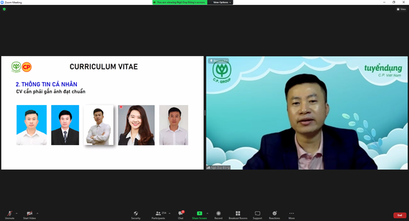 In order to help students have more opportunities to give and add soft skills, serving at work. The Corporate Relations Department in collaboration with CP Vietnam Corporation organized an online training session "Skills to conquer employers" at 19:00 on October 19, 2021. Attending the training session were representatives of CP Group. Vietnam, the Faculty's Board of Directors and nearly 250 students from the Faculty of Food Science and Technology and the Faculty of Finance - Accounting.