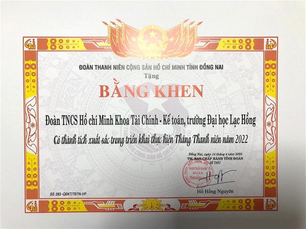 According to the activities’ result and remarkable performances of The FFA Union in March, 2022. Lachong University’s Union has suggested the FFA Union to create the profile and then send to the Standing Committee Of Dongnai Province Union in order to commend the community having excellent performance during The Youth Month in 2022.