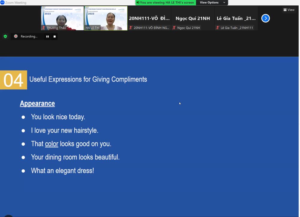 After the seminar, positive feedback was received from club members and participants. They expressed appreciation for the rich content and quality of this online activity. Both members of the English Club and other participants felt that the seminar provided them with new knowledge and skills to enhance their English communication abilities.