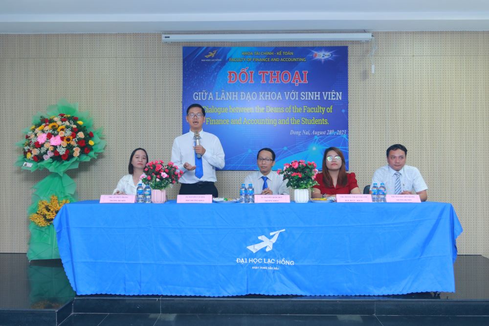 Attending the program today were the presence of Mr. Nguyen Quoc Huy - Dean of Faculty of Finance and Engineering, Mr. Nguyen Van Hai - Vice Dean of Faculty of Finance and Engineering, Ms. MSc. Hoang Thi Quynh Anh - Secretary of the Faculty of Finance and Engineering. In addition, the dialogue session had the presence of more than 200 students of the courses and faculty members of the Faculty