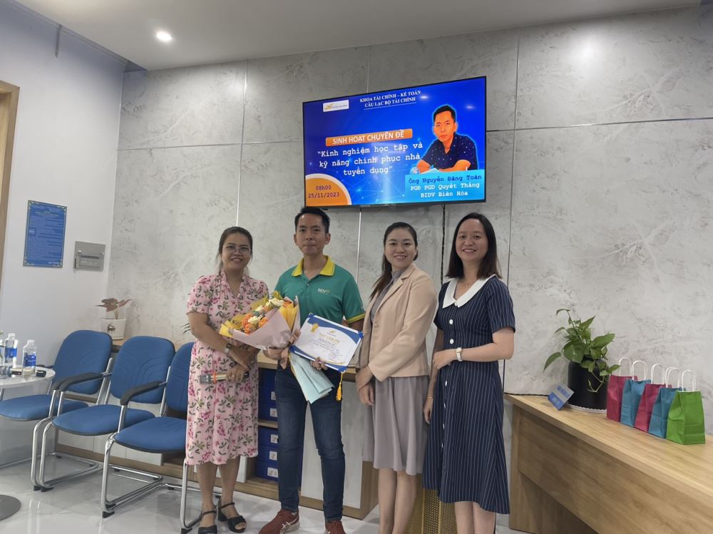 On November 25, 2023, the Finance Club of the Faculty of Finance and Accounting organized its second meeting. The session garnered special attention with the presence of guest speaker Mr. Nguyen Dang Toan, Deputy Director of the Quyet Thang BIDV Bien Hoa Branch.