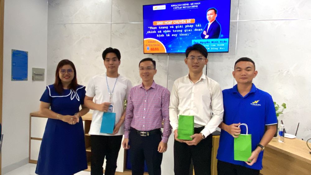 On the morning of March 16, 2024, the Faculty of Finance and Accounting organized a Finance Club activity, featuring Mr. Nguyen Minh Tien, Director of the Business Center of Construction Bank - Dong Nai Branch, Deputy Director of Finance Vision Co., Ltd. The session's theme was "Current Situation and Personal Financial Solutions in the Economic Recession Period."