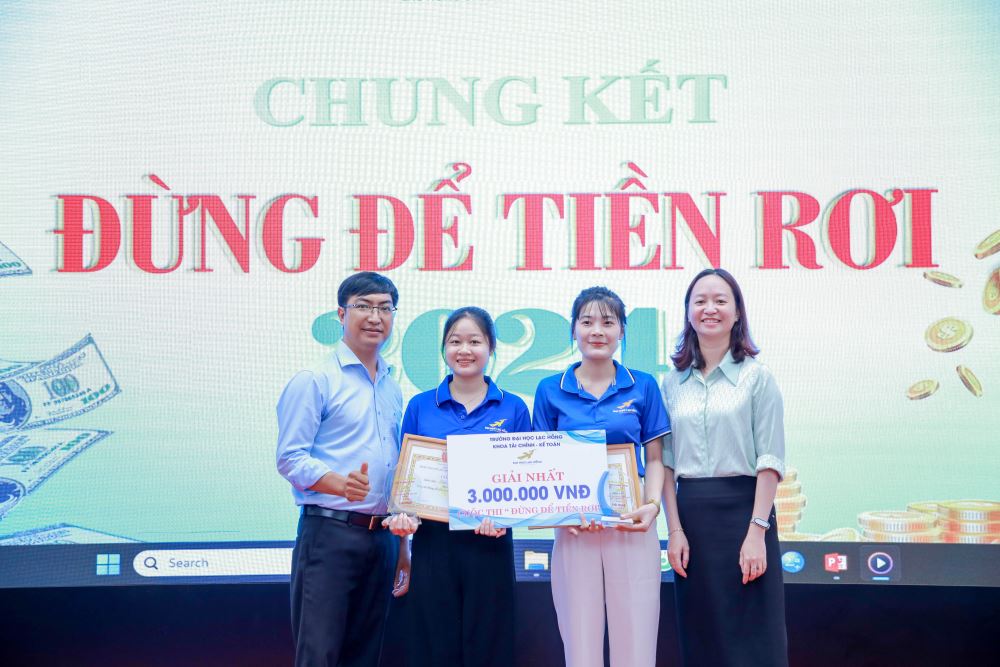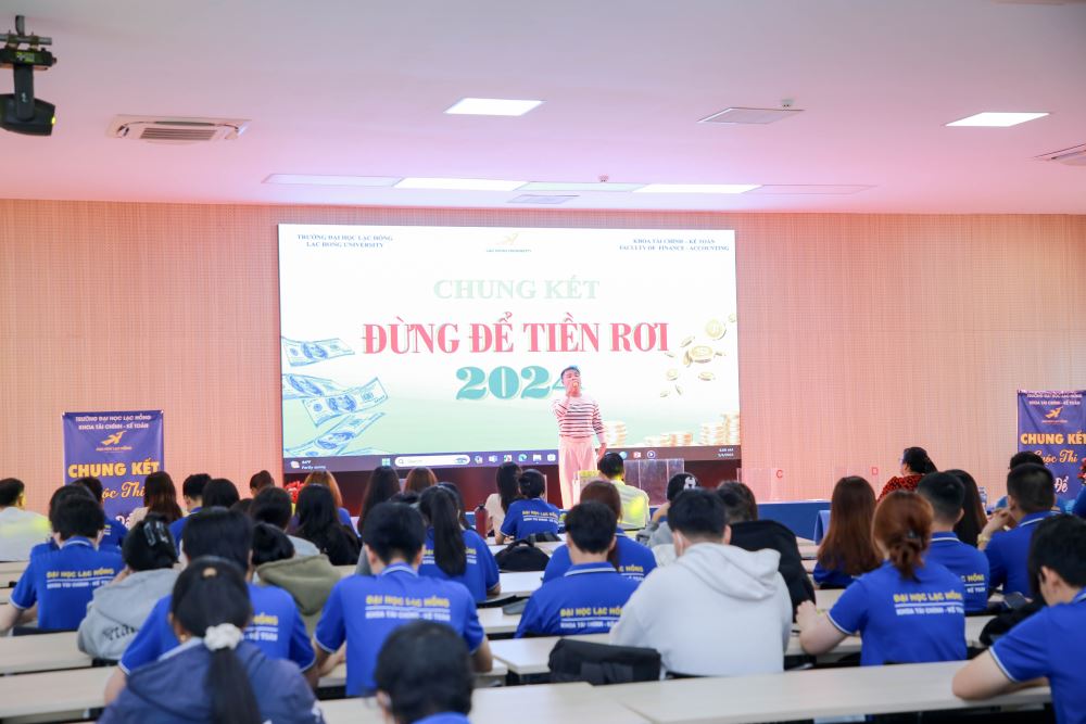 After an intense and exciting qualifying round, the "Don't Let Money Slip Away" competition organized by the Finance and Accounting Department has reached its climax with the final round held at Auditorium A301, Campus 1 of Lac Hong University on the morning of April 5, 2024.