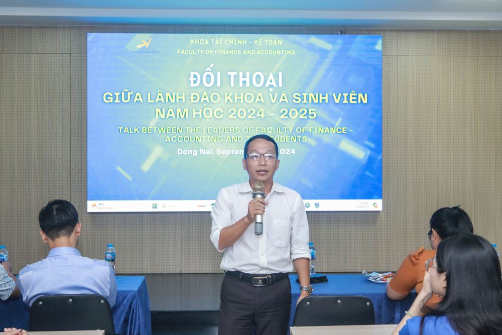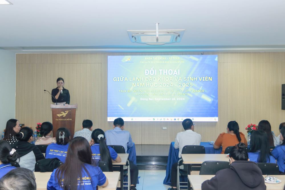 On the afternoon of September 16, 2024, at Room B203, Campus 1, the Faculty of Finance and Accounting at Lạc Hồng University organized a dialogue between the Faculty's leadership and students from the 2021, 2022, and 2023 cohorts. The event attracted a large number of students and took place in an open and lively atmosphere.